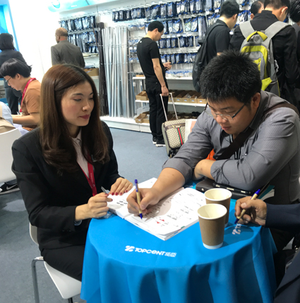At the exhibition, we learned about the brand of Topcent, whose staff are very professional and answer a series of questions we asked.